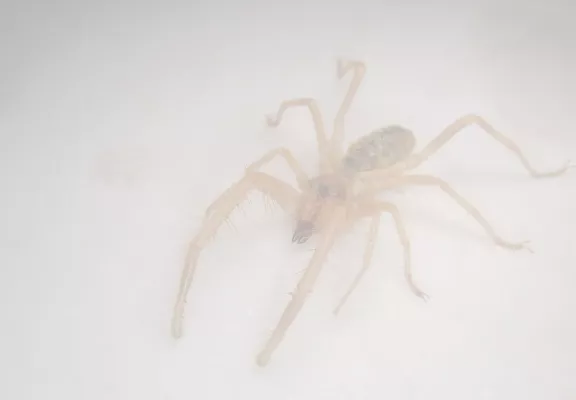 Brown recluse spiders also have a dangerous bite and can often be harder to identify. Unlike black widow spiders, it’s a lack of markings that defines the brown recluse. While brown recluse spiders share a similar brown coloring with several other species, most have stripes or markings on their legs, while brown recluses do not. The only marking you are likely to see on a brown recluse is a darker violin-shaped mark on its back. Another feature that’s different from the black widow is that most brown recluse bites are not felt right away. Instead, the intense pain from their bite is generally delayed for six to eight hours following the bite. Other symptoms of a brown recluse bite include a small blister, restlessness, and fever. The tissue around the bite will begin to die over a week or two, leaving an open ulcer and the potential for dangerous infection.